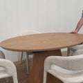 The Louie 160-200cm Oval Extension Dining Table Oak combines modern style with everyday practicality. Its sculptural design and natural look bring elegance to any space. With a hidden metal butterfly extension, it easily expands from 160cm to 200cm, seating 6 to 8 people. The sturdy conical base adds style and provides extra legroom for added comfort.