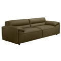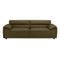 The Brunelli 3 Seater Leather Sofa olive green blends comfort and style with its oversized shape, low-profile base, and generous seating. Wide pillow-top armrests and a gently contoured backrest offer a relaxed, supportive feel. Upholstered in soft, full-grain leather, the warm green tone brings an earthy touch to any modern space.